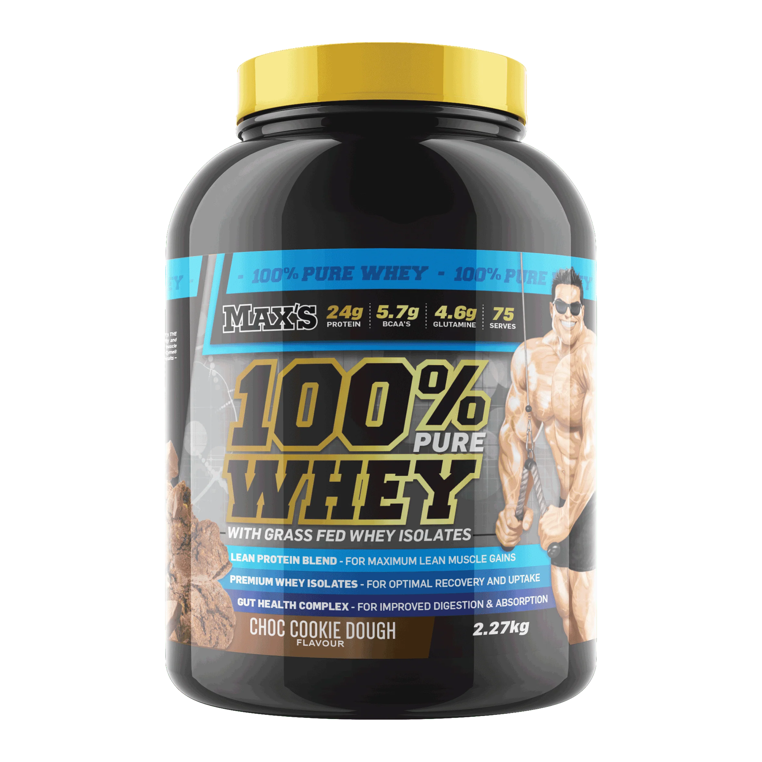 MAX'S 100% Whey Protein is our Premium Grass Fed Whey Protein Blend designed for serious trainers. It's high in Whey Protein Isolate, nature's most bio-available protein and health supporting, muscle building Whey Protein Concentrate. If you want lean muscle then MAX'S 100% Whey is the right choice!