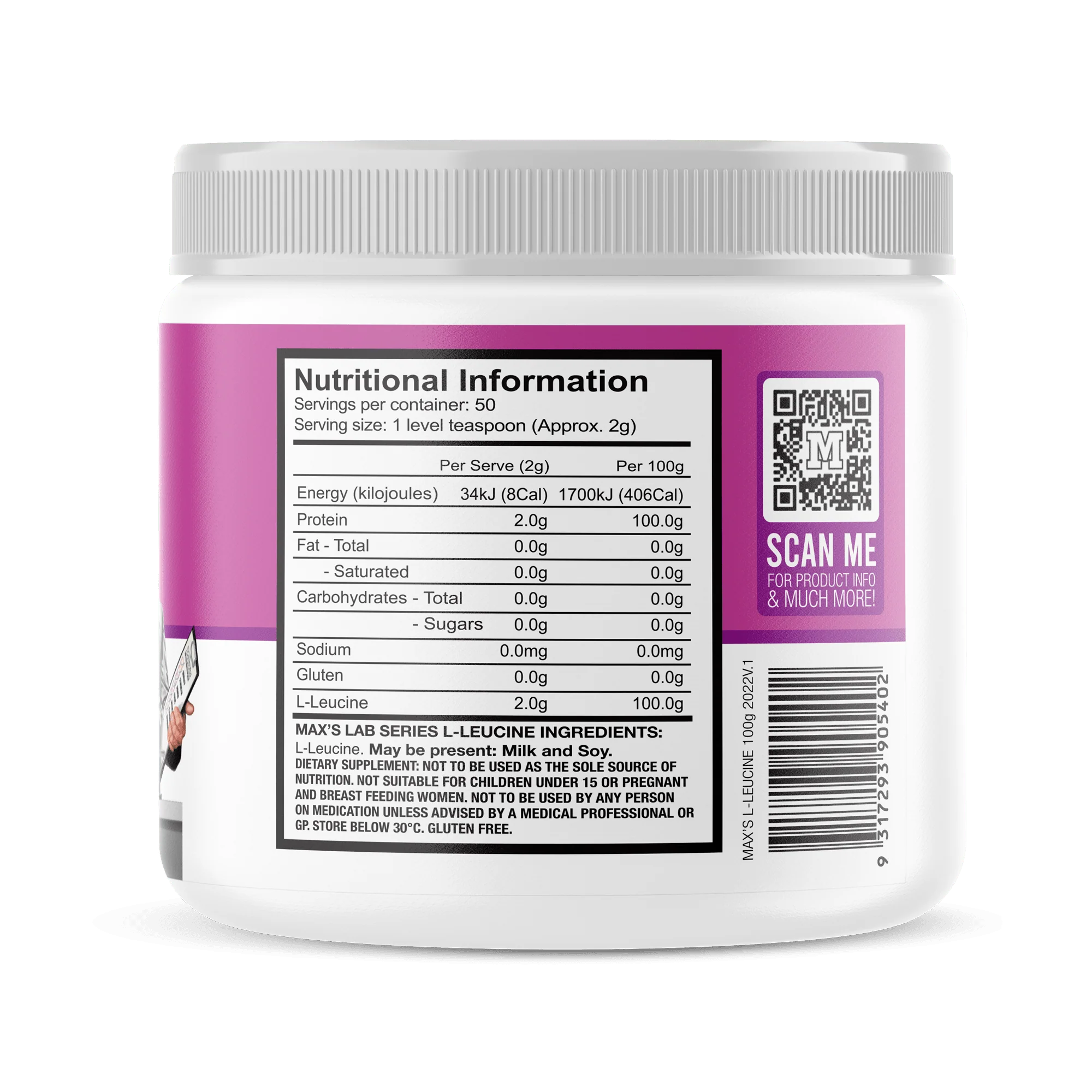 MAX’S LAB SERIES L-LEUCINE is made from pure micronised L-Leucine with no added flavours, sweeteners or fillers. L-Leucine regulates protein synthesis by turning on the anabolic pathway to build lean muscle, while maximising recovery between training sessions.