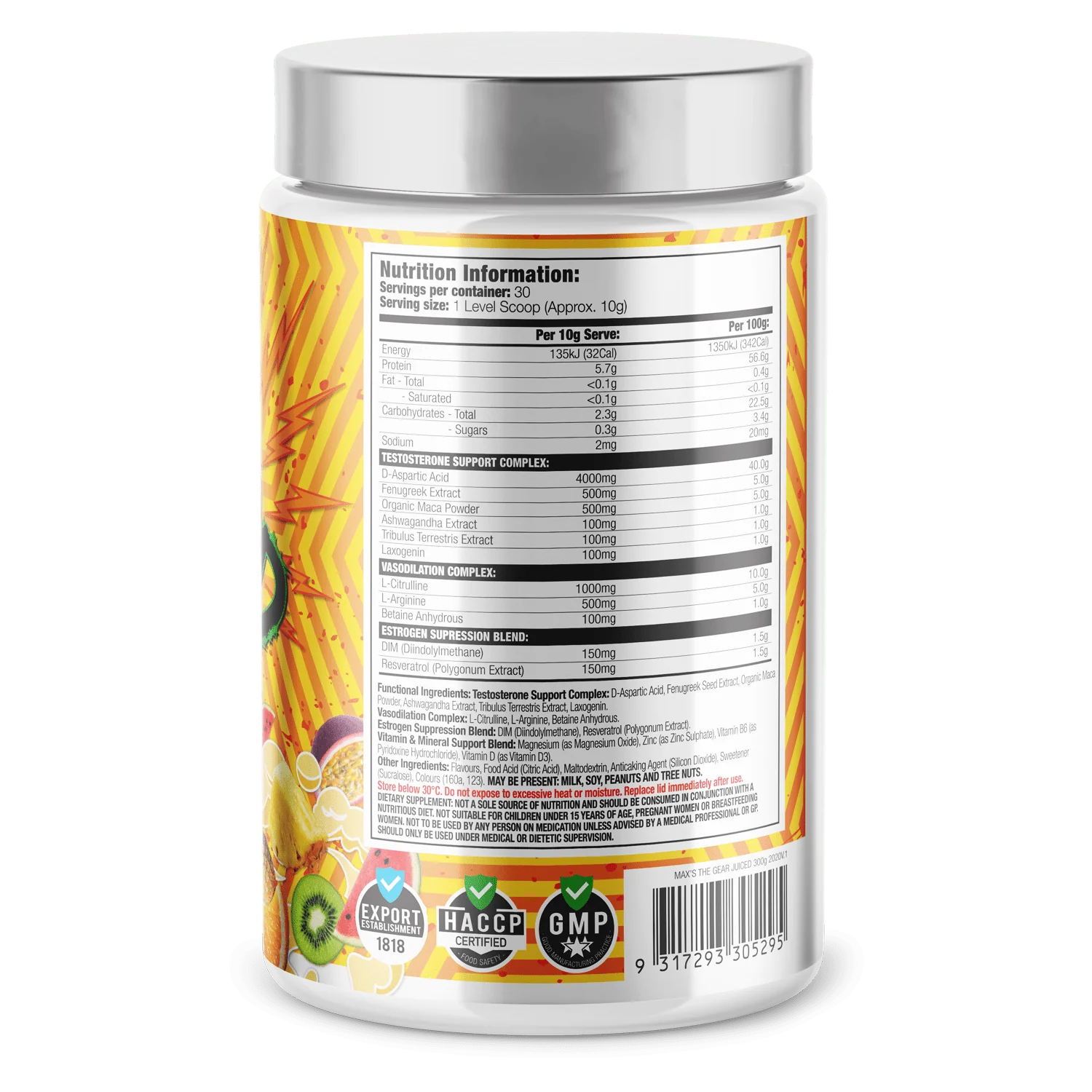 From the Lab who brought you THE GEAR & THE GEAR JACK'D - MAX'S Lab Series The Gear JUICED is the ultimate Test Support Formula! Now in concentrate powdered form!