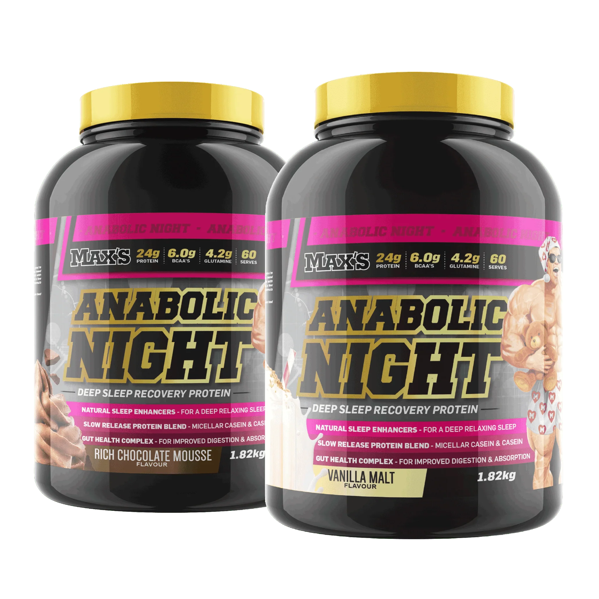 Save BIG on MAX'S Slow Release Anabolic Night Twin Pack! This sustained release protein formula is the key to building muscle while you sleep like a baby. With added calming herbs and 24g of protein per serve the Anabolic Night Twin Pack is the key to unlocking your anabolic growth while your body rests and recovers overnight.