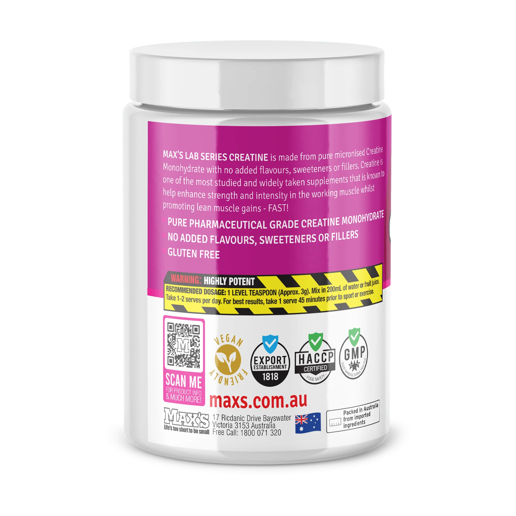 MAX'S Lab Series Creatine Twin Pack 400g gives you 266 servings of Pure Micronised Creatine Monohydrate!